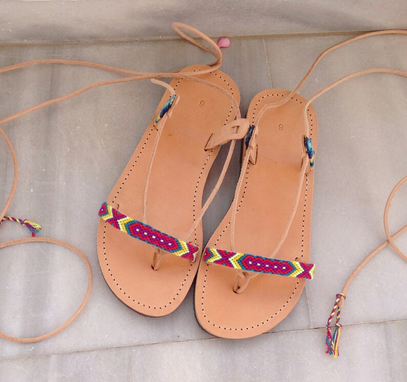Genuine leather sandals"decorated with friendships bracelets