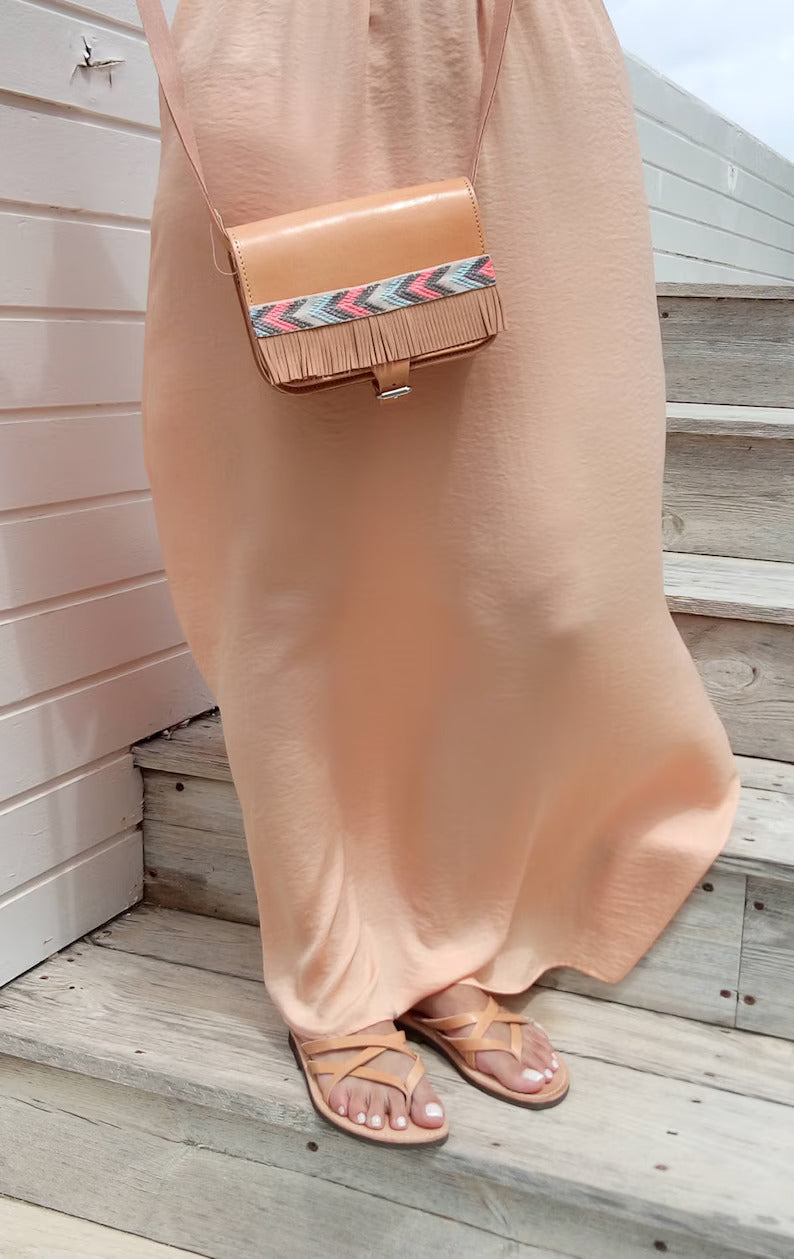 leather handmade crossbody bag of cowhide leather made in Greece.