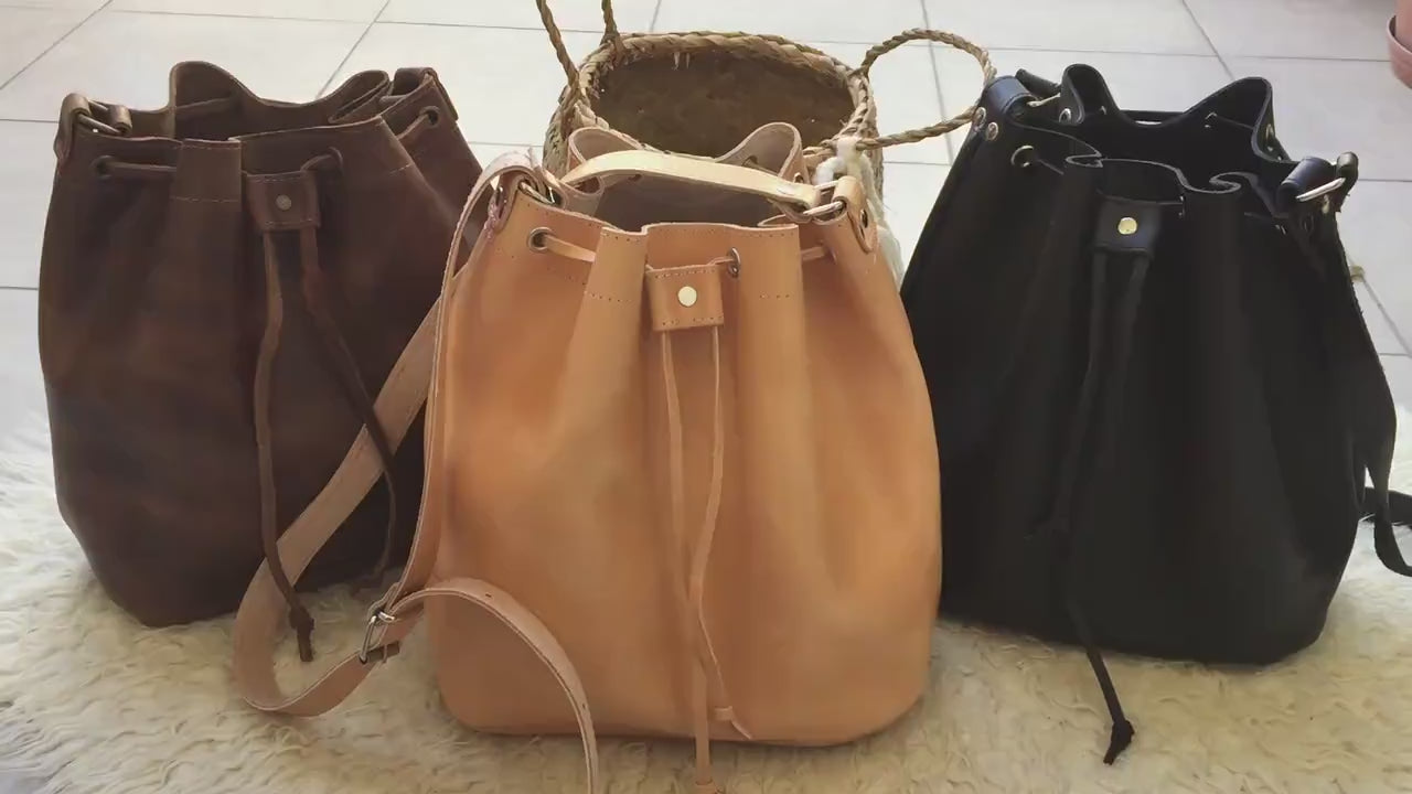 100% genuine Greek leather bucket bag